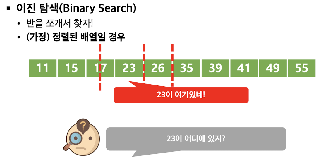 반을 쪼갬 -> 23이 26보다 작으니 왼쪽에 있겠군 -> 17보다 크니 오른쪽에 있겠군 -> 23이 여기있네!