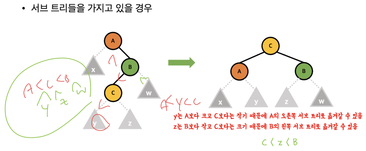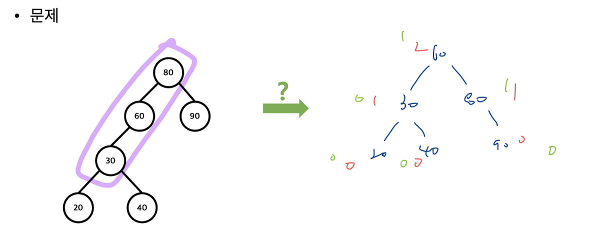 AVL 트리에서 데이터 삽입/삭제를 하면 불균형이 생김 >> 어떻게 바꿔야 할까?!