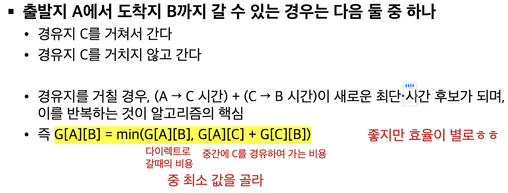 '음의 가중치를 가지는' 그래프에서도 최단 거리 찾기 가능 & 시작점의 '위치가 자유로움'