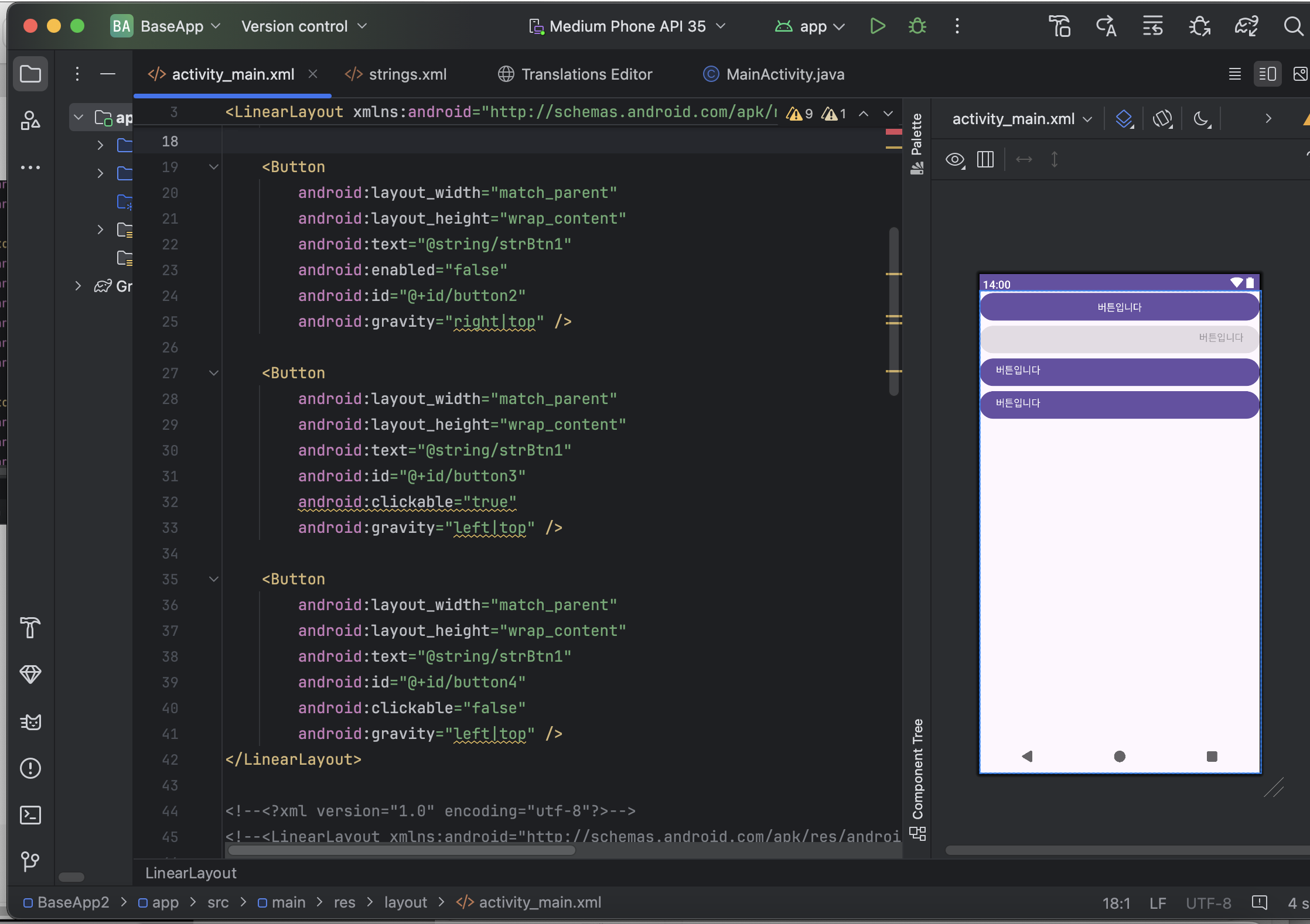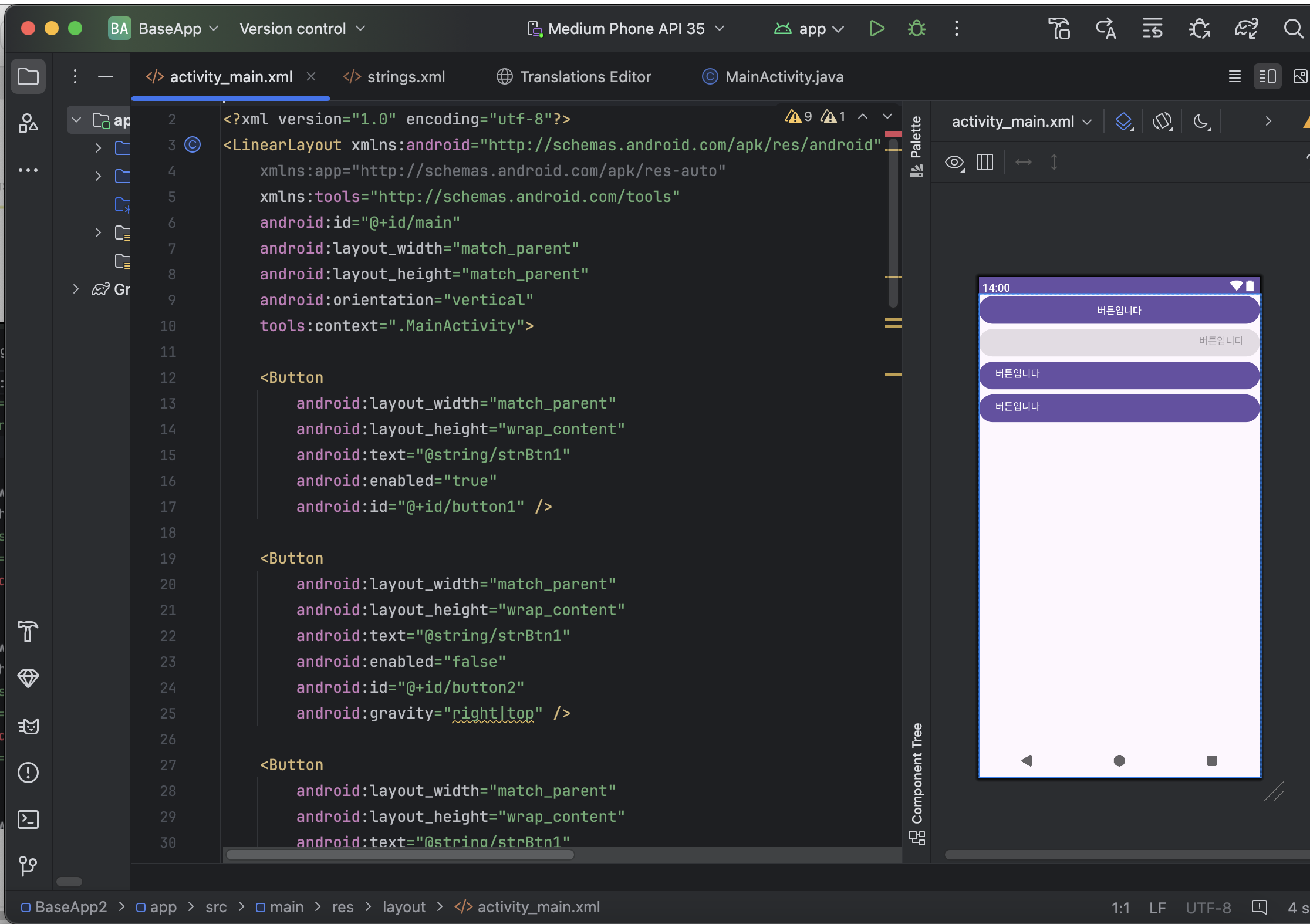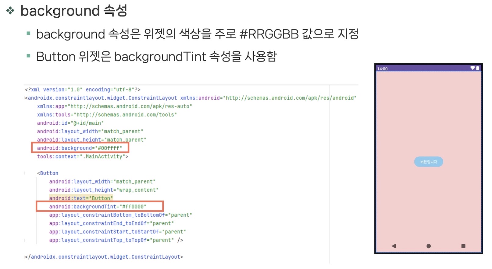 📱 모바일프로그래밍 - 기본 위젯 익히기 (View클래스의 XML속성)📱