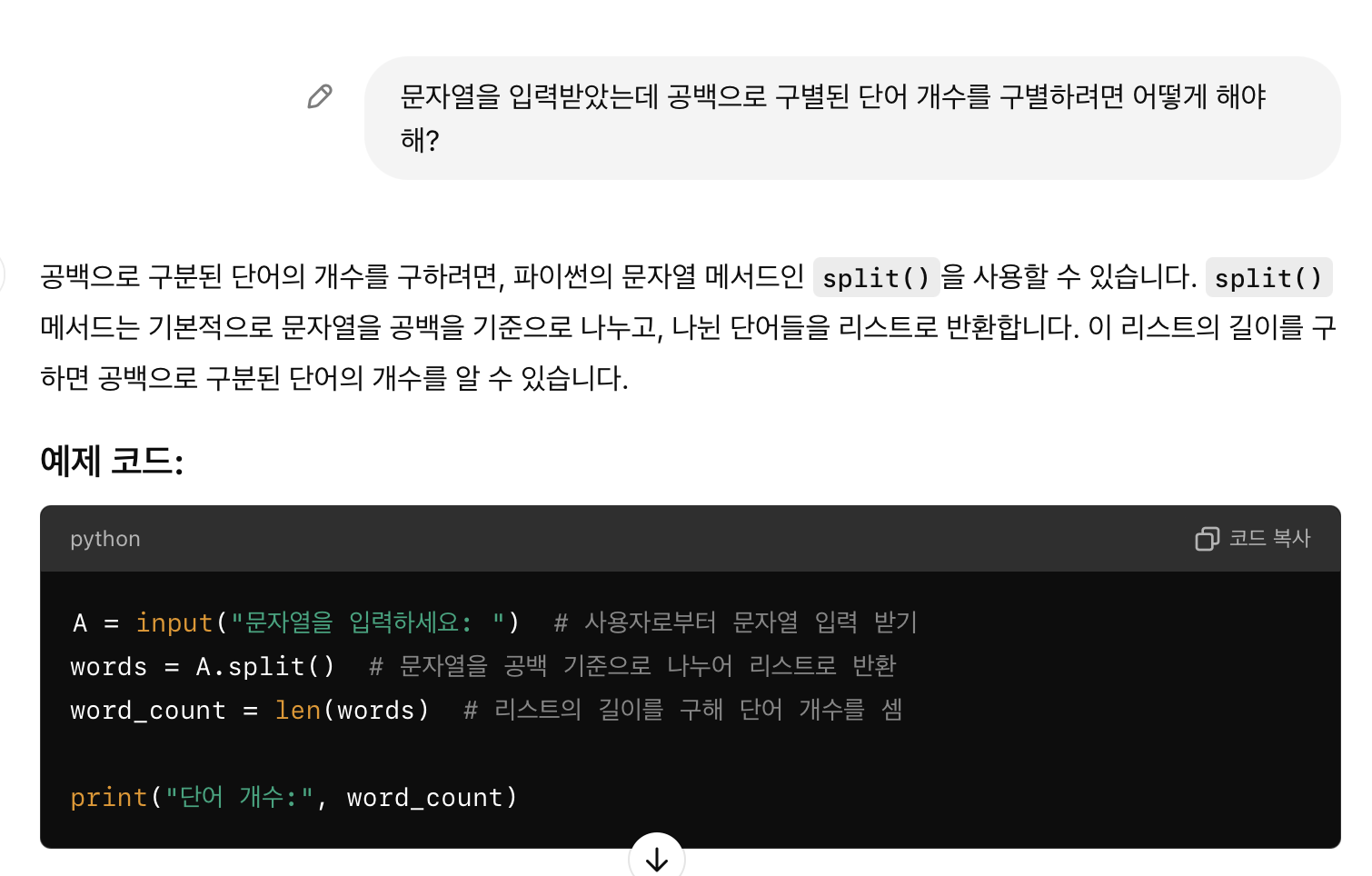 word = A.split() ####문자열을 공백 기준으로 나누어 리스트로 반환!!