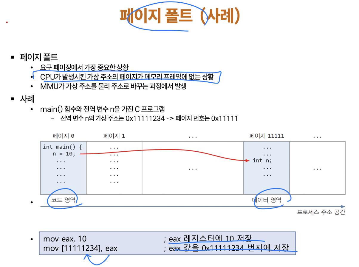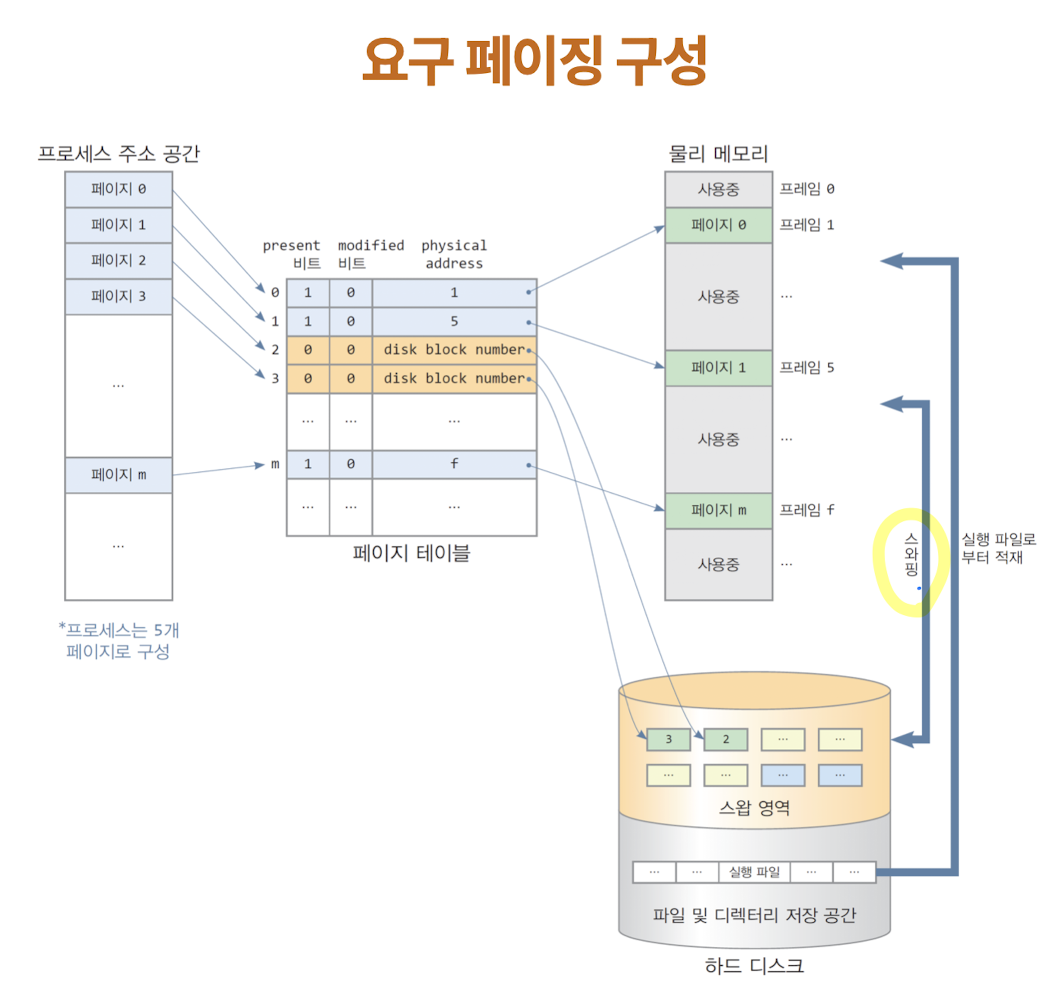 (요구 : 페이지가 실행에 필요할 때 물리 메모리를 할당받고 디스크에 읽어 적재)