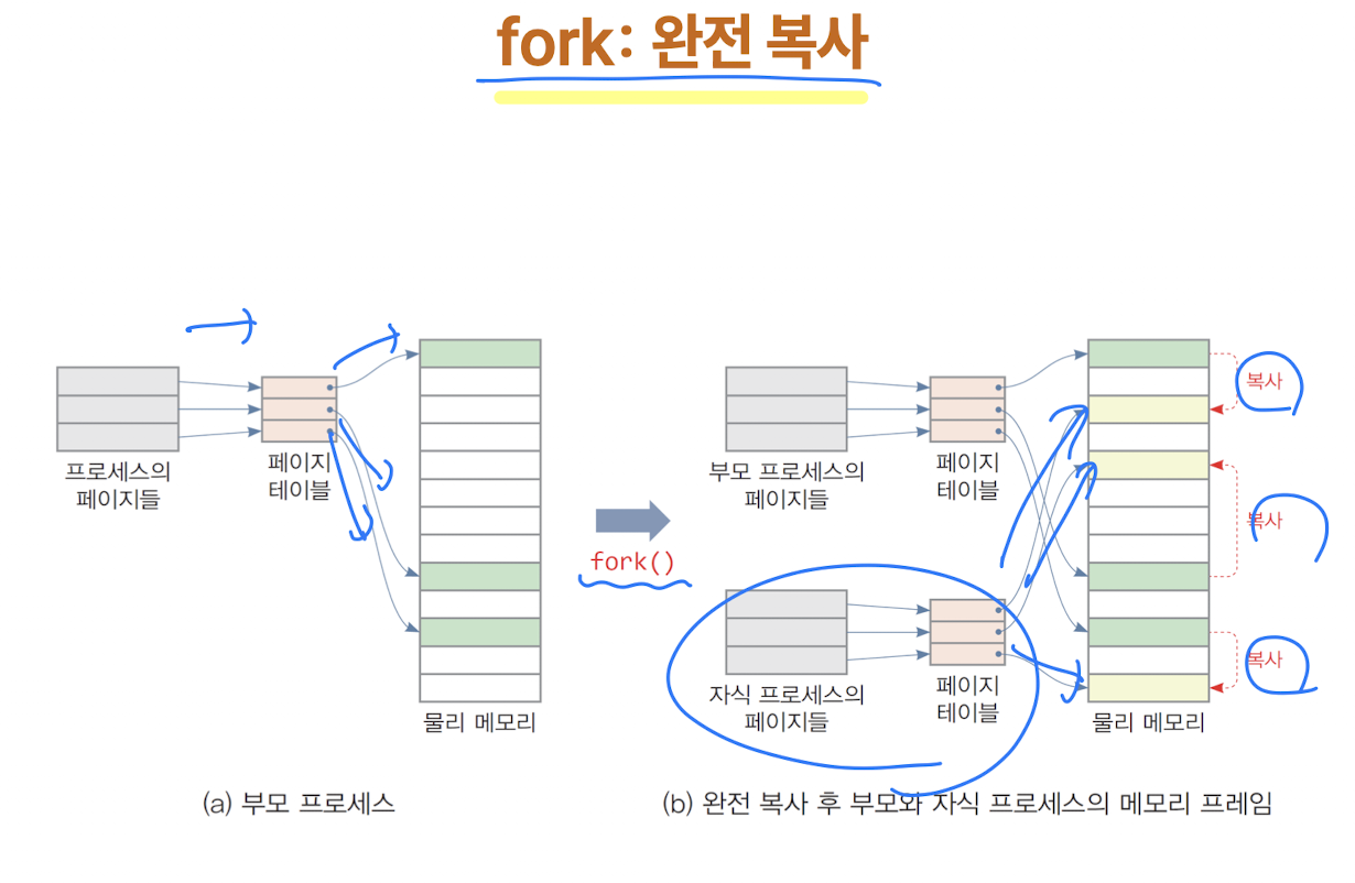 [ fork()의 완전복사 & 쓰기 시 복사 ]