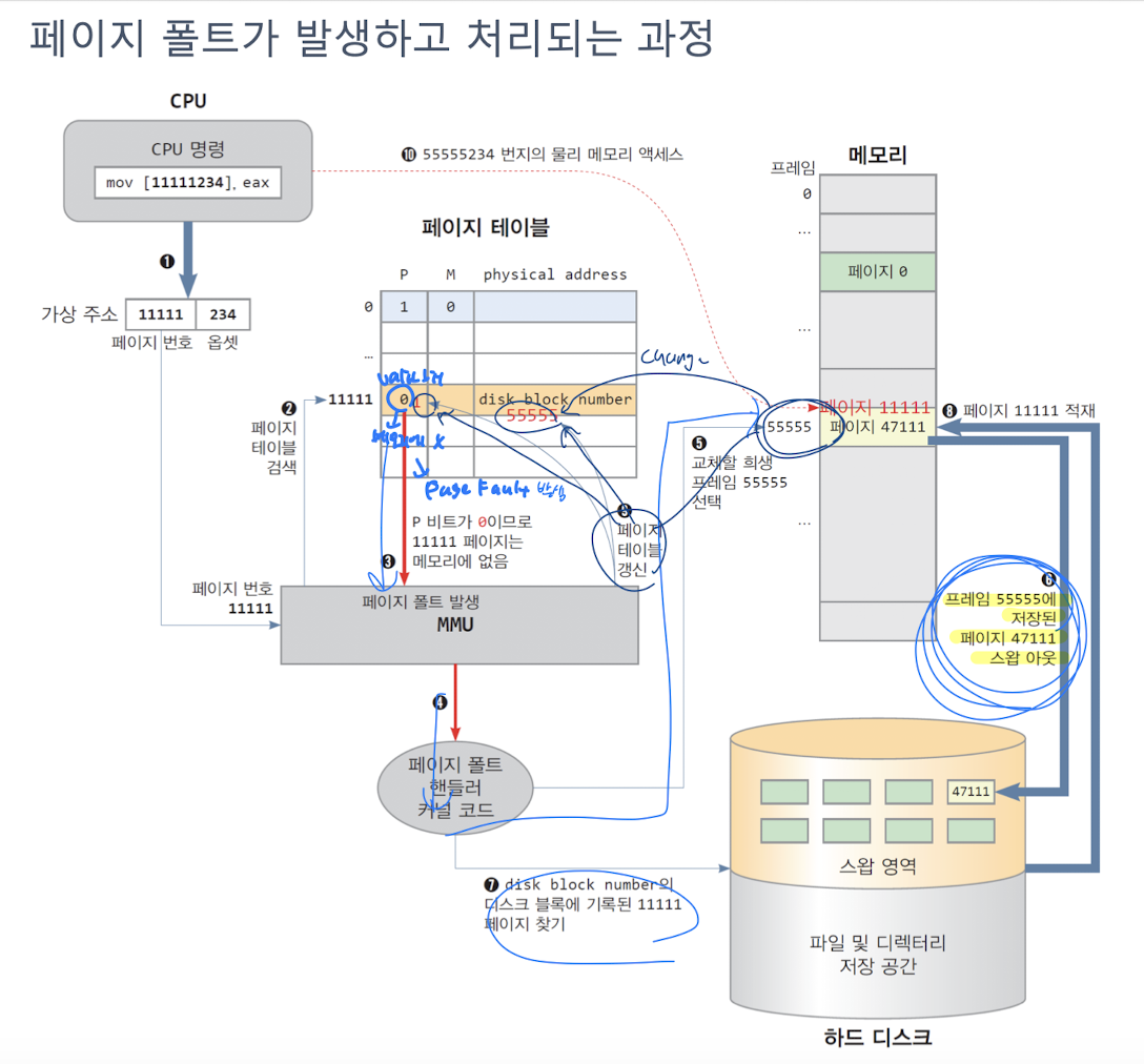 - 운영체제는 첫 페이지만 물리 메모리에 적재하고,