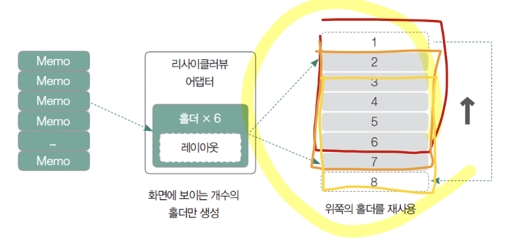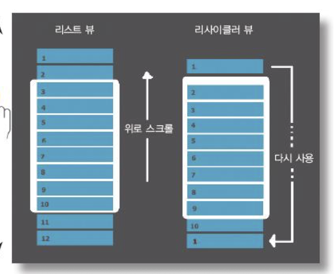 : 항목을 표시하기 위해 생성한 뷰를 재활용(recycle)함 !!