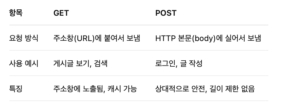 - GET 요청으로 비밀번호 전송하면 주소창에 노출돼서 보안 취약